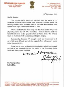 काँग्रेसच्या खासदारांनी सांगितले की, या गोंधळात पक्षाचे ज्येष्ठ नेते मल्लिकार्जुन खर्गे यांच्यासोबत वाईट वागणूक करण्यात आली. याबाबत काँग्रेसने संसद अध्यक्ष ओम बिर्ला यांना पत्राद्वारे तक्रार केली असून भाजपच्या खासदारांच्या या वर्तणुकीचा निषेध केला आहे.